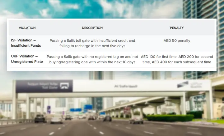 یکی از تخلفات سالیک در دبی که جریمه در پی دارد، نقض ISF به معنی بودجه ناکافی است. اگر در هنگام عبور از گیتهای عوارض جادهای در دبی، شارژ حساب سالیک شما به میران کافی نباشد، توسط سیستم جریمه میشوید. جریمه چنین تخلفی در سالیک دبی برابر با 50 درهم اماراتی است.