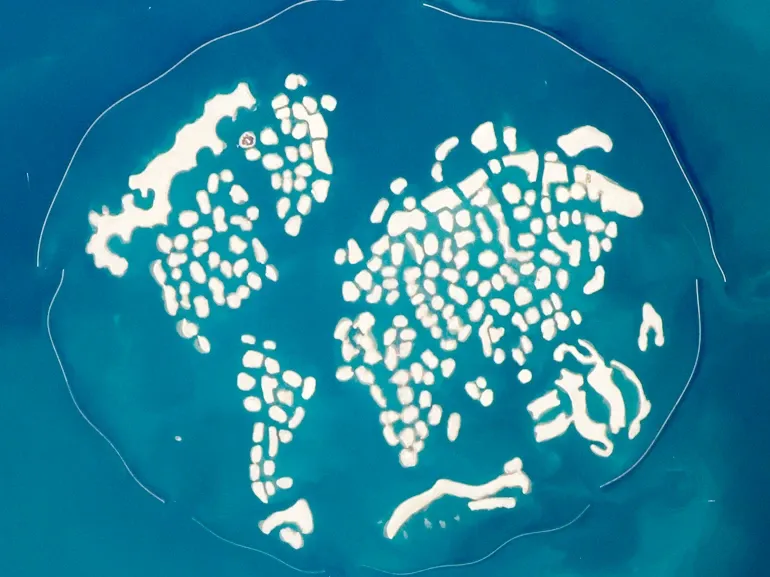 مجموعهای از جزایر ساخت بشر به شکل نقشه جهان در نزدیکی دبی هستند.