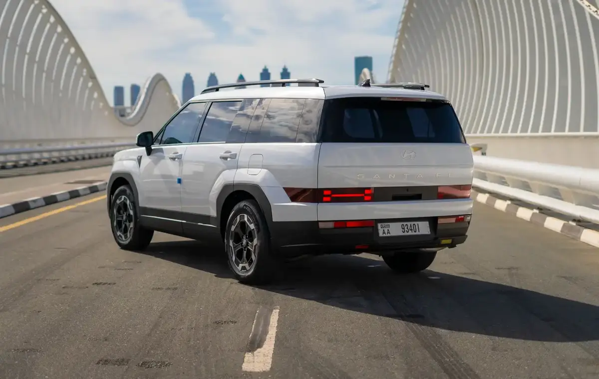- جودة وأداء السيارة: هيونداي سانتافي 2024 تتميز بتصميمها العصري وأدائها الموثوق، مما يجعلها مثالية للتنقل في شوارع دبي والطرق الصحراوية.
