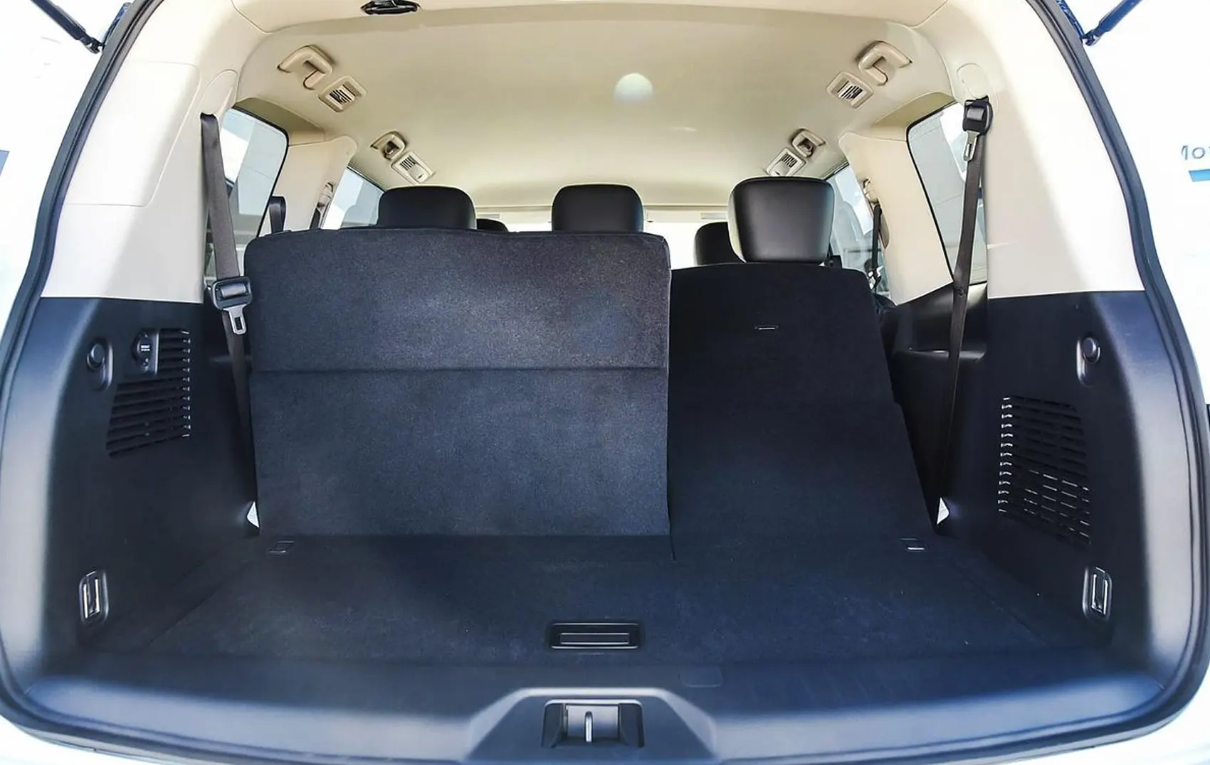 تأجير السيارات في عمان نیسان باترول ۲۰۲۳ توفر مساحة واسعة فی الصندوق الخلفی لتخزین الحقائب، حیث یمکن وضع ۳ حقائب کبیرة بشکل مریح. بفضل تصمیمها الرحب، تعتبر مثالیة للسفر لمسافات طویلة مع الکثیر من الأمتعة. یفضل توزیع الحقائب بشکل متوازن داخل الصندوق لضمان استقرار السیارة أثناء القیادة.