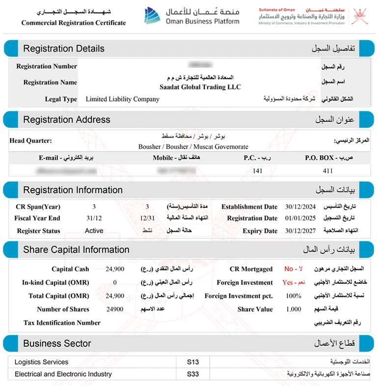 تصريح تأجير السيارات في عمان لشركة سَعَادَة