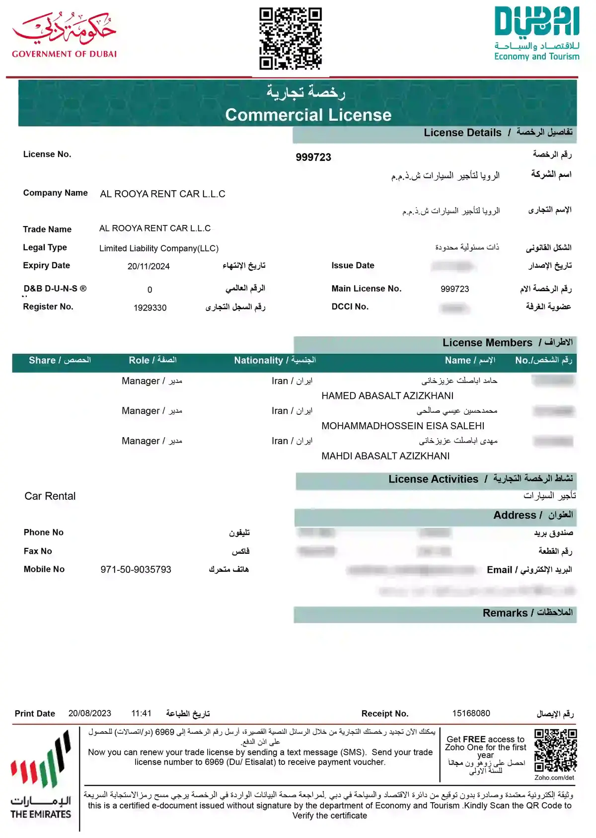 رخصة الشركة لتأجير سيارات في دبي