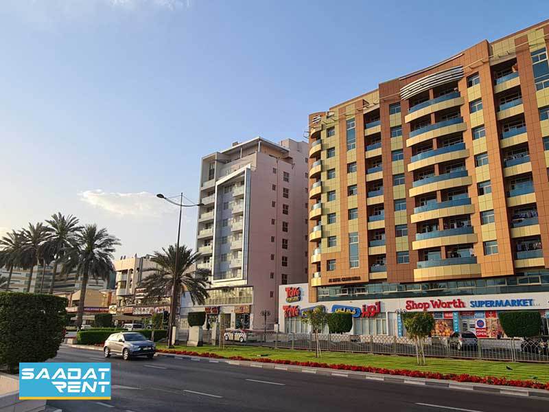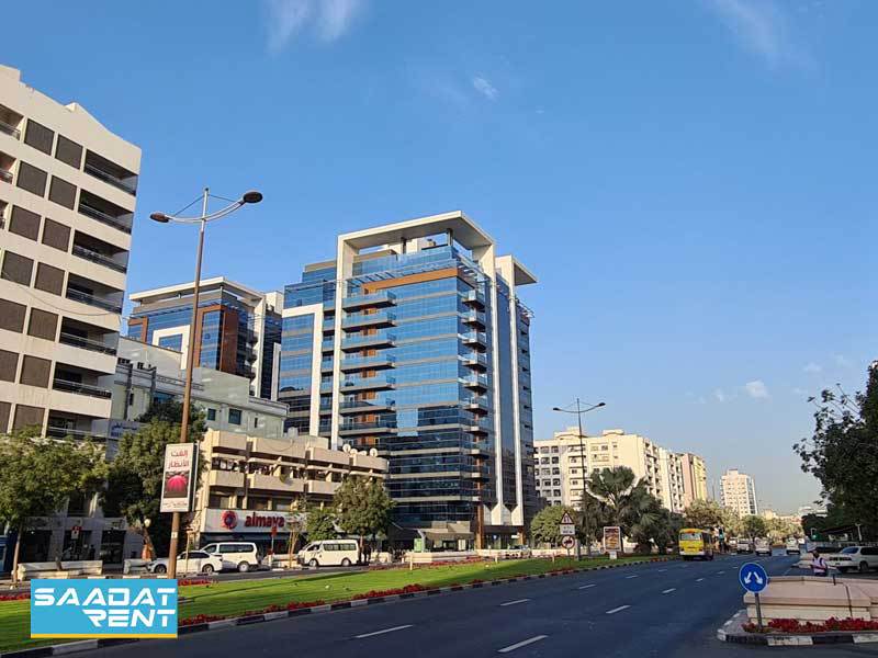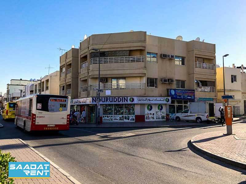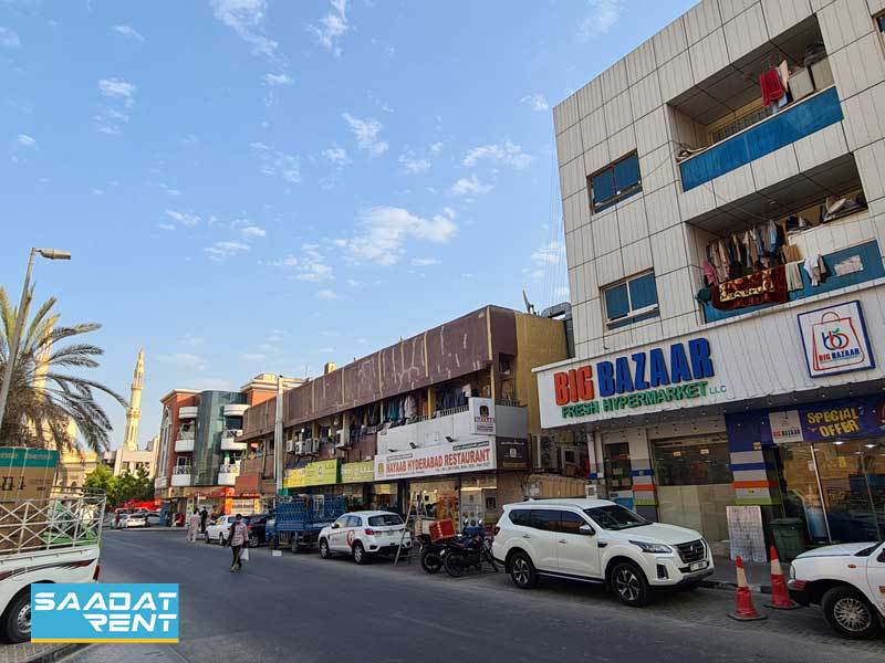 • ویژگی‌ها: خیابانی نزدیک مرکز شهر دبی با فروشگاه‌ها و بازارهای کوچک.