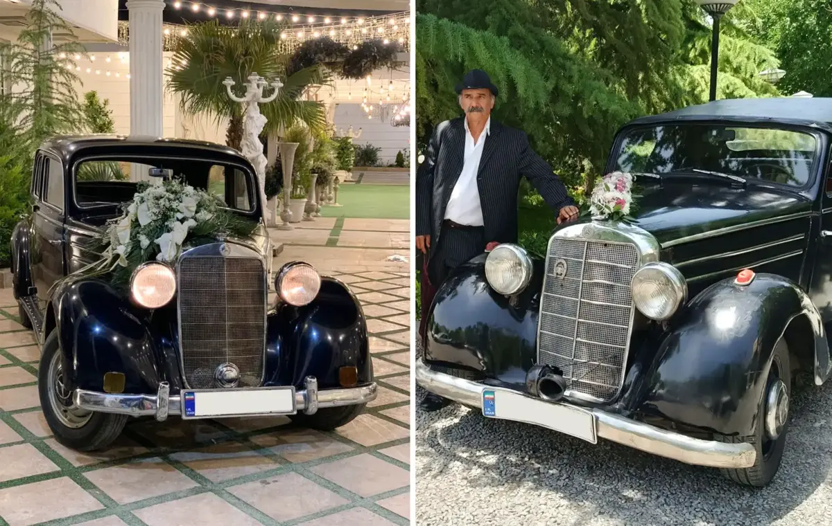 اجاره ماشین عروس کلاسیک بنز ۱۷۰ برای ۱۵ ساعت و از ساعت ۹ تا ۲۴ ارائه میشود.