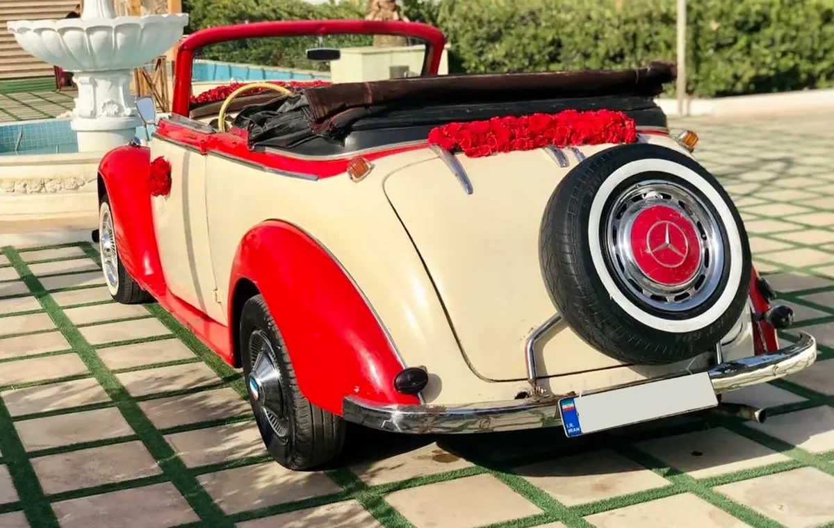ماشین عروس بنز کروک از ساعت ۹ صبح تا ۱۲ شب برای ۱۵ ساعت قابل اجاره است.