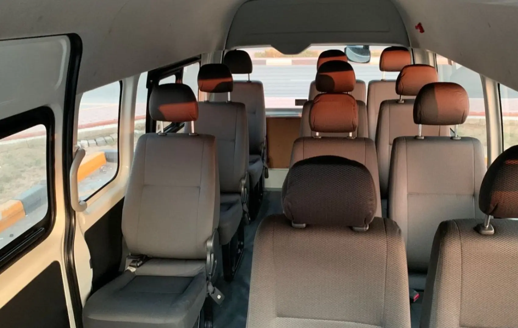 - ظرفیت: ون تویوتا هایس معمولاً دارای ظرفیت برای نشستن ۱۲ تا ۱۵ مسافر است، که آن را به یک گزینه عالی برای گروههای بزرگ و سفرهای خانوادگی تبدیل میکند.