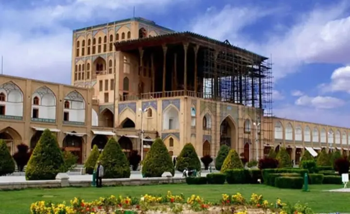 Ali Qapu Palace is located in the west of Naqsh-e-Jahan Square, facing the Sheikh Lotfollah Mosque in the city center of Isfahan. Ali Qapu Palace is one of the most important architectural masterpieces of the early 11th century and has world renown. The mansion is 48 meters high and has 6 floors with spiral staircases. The existence of the Ali Qapu building, which was the residence of the Shah, indicates the government's supervision of the city and the life of the people, and the importance of the politics.