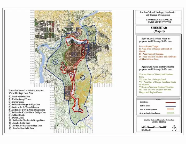 Shushtar Historical Hydraulic System - inscribed property UNESCO Official Map