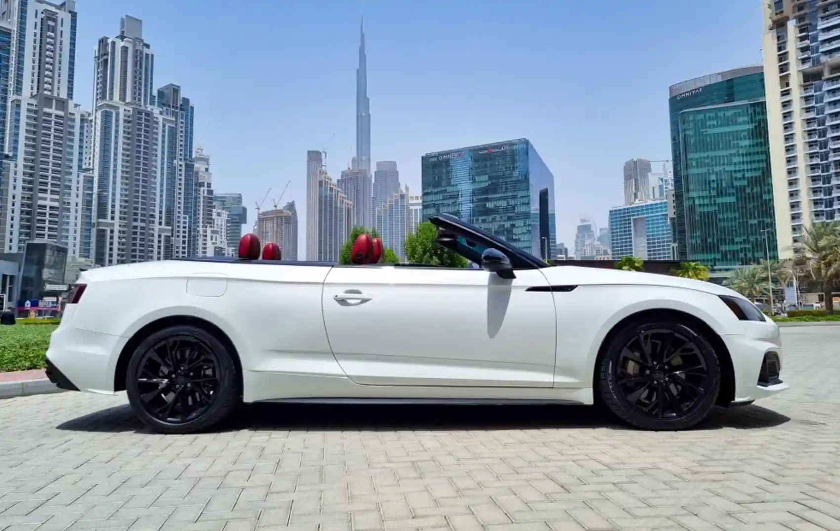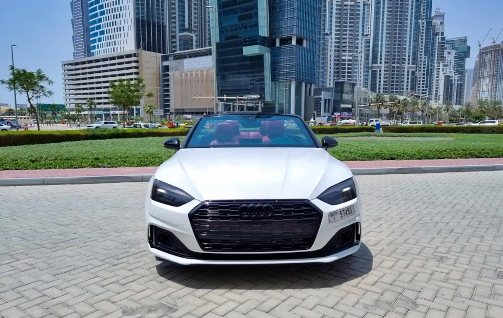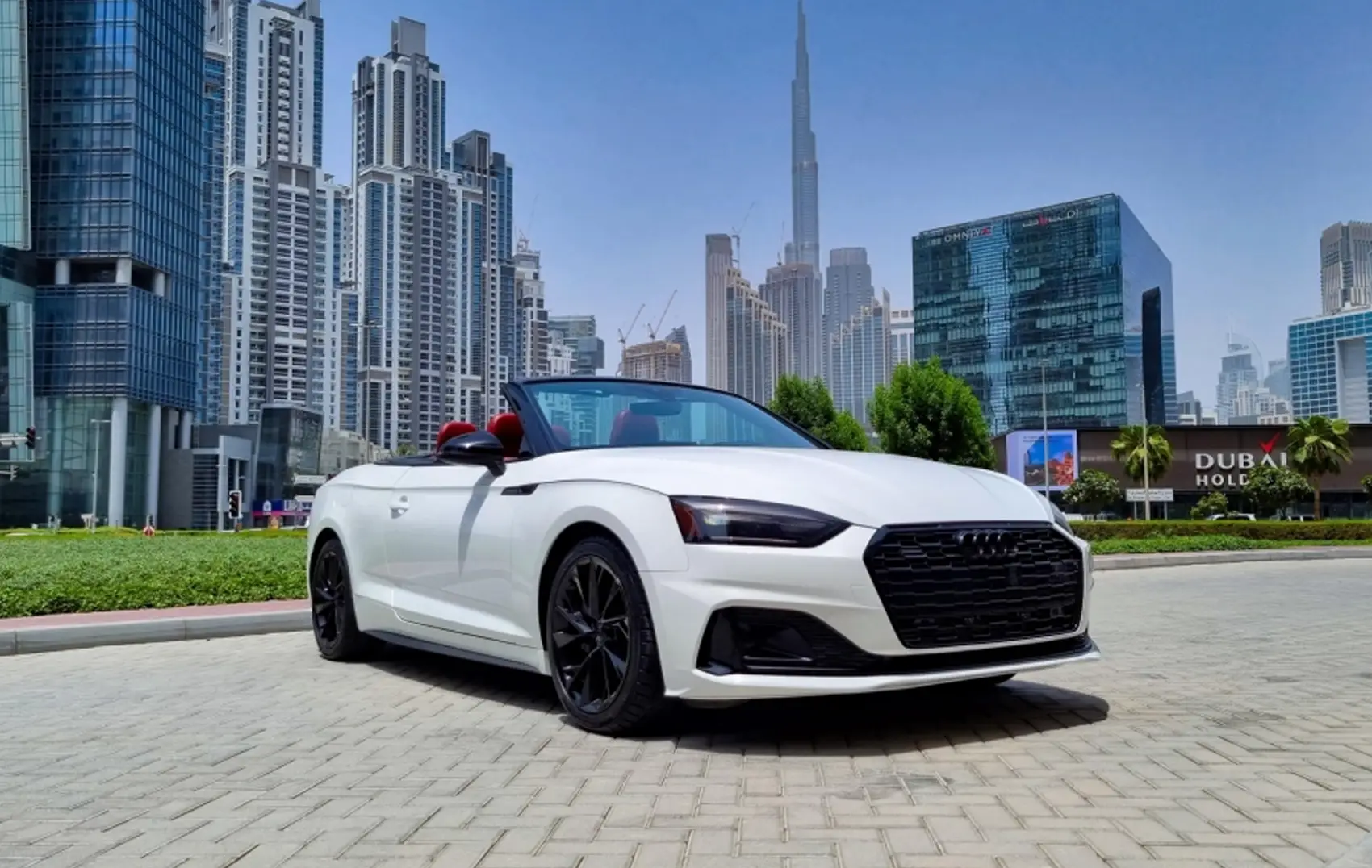 The rental cost for an Audi A5 Convertible in Dubai starts from approximately 500 AED per day. This price may vary depending on the rental duration and season.