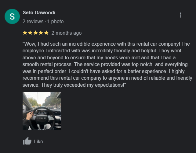 Here, you can find review and social media platforms which has real customer reviews, photos, videos and, experiences shared about their car rental experience. scroll to explore!