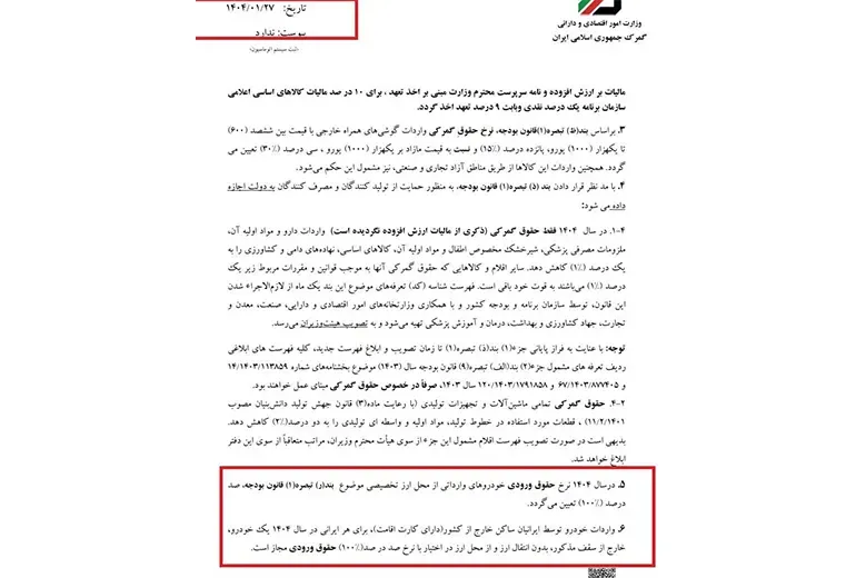 • نقش قانون بودجه: در قانون بودجه ۱۴۰۴ منابع ارزی مجاز، سقف ارزش خودرو و میزان عوارض واردات مشخص شده است.