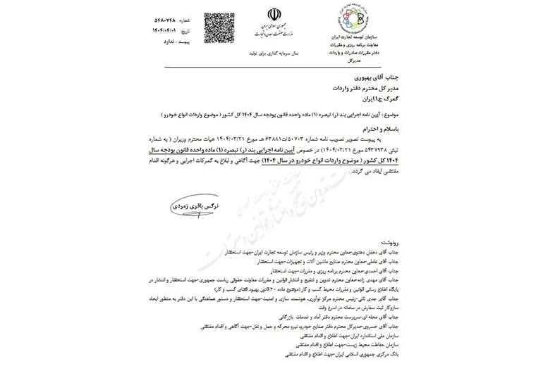 بخشنامه‌ها و ابلاغیه‌های جدید دولت، از جمله قوانین گمرکی و مقررات ارزی، روند شرایط واردات خودرو ۱۴۰۴ را تحت تأثیر قرار داده و شرایط و محدودیت‌هایی برای واردکنندگان ایجاد کرده‌اند.