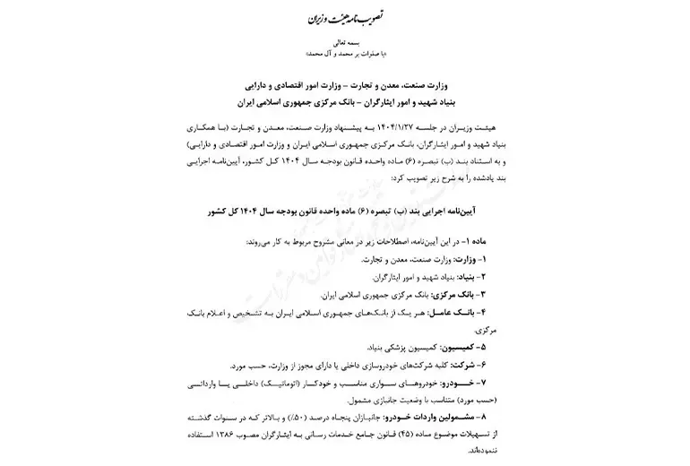 • ثبت‌سفارش در سامانه وزارت صمت بر اساس آیین نامه واردات خودرو ۱۴۰۴
