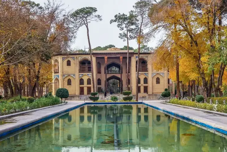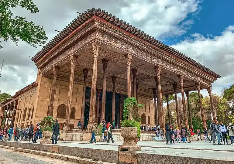 کاخ چهلستون اصفهان یکی از باغکاخهای دیدنی دوره صفویه است که در میان باغی وسیع و سرسبز در نزدیکی میدان نقش جهان قرار دارد. این کاخ در زمان شاه عباس دوم ساخته شد و بهدلیل انعکاس بیست ستون ایوان بر حوض مقابل آن، به نام چهلستون معروف شده است. ایوان کاخ با ستونهای چوبی بلند و سقف منقوش خود جلوهای چشمنواز دارد و در تالار اصلی میتوان نقاشیهای دیواری بزرگی از رویدادهای تاریخی و مراسمهای درباری صفویان را مشاهده کرد. حوض بزرگ مقابل کاخ، باغچههای منظم و معماری چشمگیر، این مکان را به یکی از محبوبترین جاذبههای گردشگری اصفهان تبدیل کرده است.
