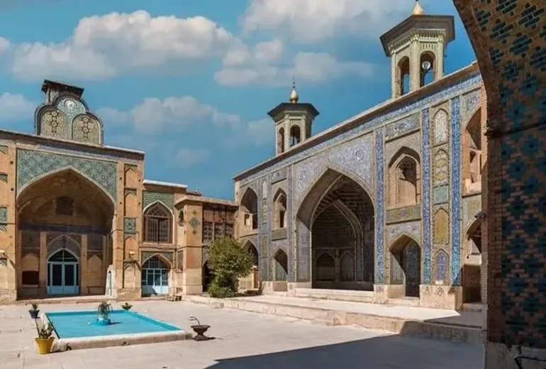 مسجد مشیر که در نزدیکی بازار وکیل نیز قرار دارد، یکی از دیدنیترین مساجد تاریخی شیراز است که زیبایی خاصی دارد. سردر باشکوه، کاشیکاریهای آبی و نقوش هندسی دقیق، بیننده را به وجد میآورد. فضای داخلی مسجد، ساده ولی بسیار پرشکوه است.