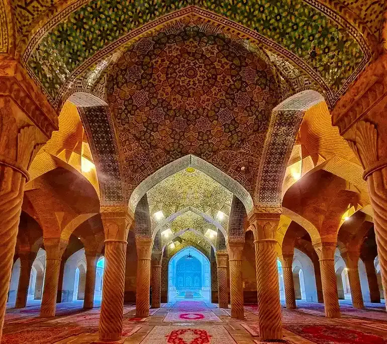 مسجد وکیل که در قلب بازار وکیل واقع شده، یکی از شاهکارهای معماری دوره زندیه است. این مسجد با ستونهای بلند، سقفهای گنبدی و تزئینات هنری خود، نمایانگر ذوق و هنر ایرانی است. بازدید از این مسجد در برنامه سفر به شیراز، فرصتی عالی برای آشنایی با فرهنگ مذهبی و هنرهای سنتی این منطقه محسوب میشود.