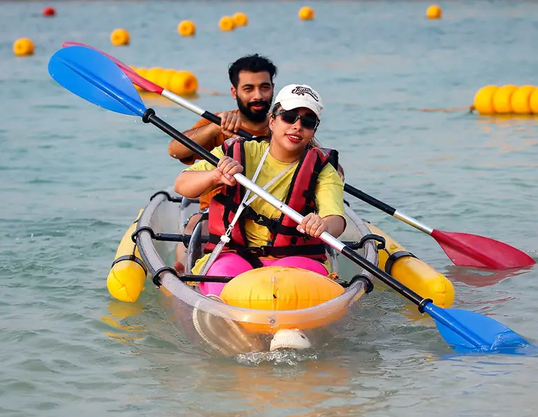 پدل برد از تفریحات آرام و جذاب ساحل مارینا کیش است که با ایستادن یا نشستن روی تخته و پارو زدن روی آب، امکان لذت بردن از مناظر اطراف را فراهم میکند. این ورزش آبی برای تمامی سنین مناسب است و خانمها نیز میتوانند با آرامش و امنیت کامل از آن لذت ببرند.
