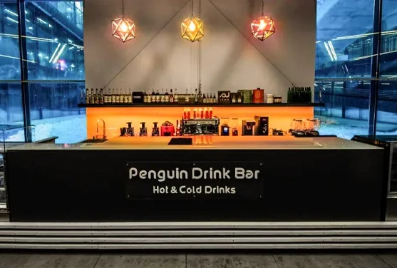 بار نوشیدنی در طبقه اول پارک پنگوئن کیش قرار دارد و انواع نوشیدنیهای سرد و گرم نظیر قهوه، شیک و کیک در فضایی دلنشین ارائه میدهد.