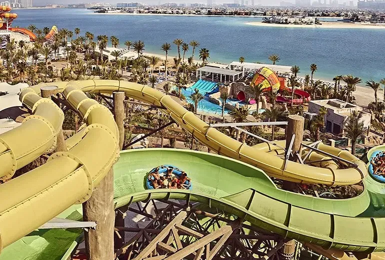 پارک آبی آتلانتیس دبی در قلب جزیره پالم جمیرا و داخل هتل آتلانتیس واقع شده و یکی از مشهورترین مقاصد تفریحی دبی بهشمار میرود. این پارک با بیش از ۱۰۵ سرسره و تفریح آبی هم برای کودکان و هم برای بزرگسالان جذابیت دارد. از سرسره سقوط آزاد Leap of Faith گرفته تا رودخانههای خروشان و آرام، همه چیز برای ماجراجویی طراحی شده است.