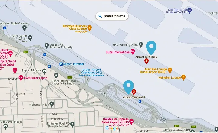 موقعیت مکانی ترمینال 3 دبی روی نقشه