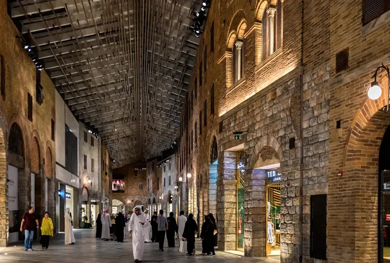 مرکاتو مال در بین مراکز خرید دبی، فضایی منحصربهفرد دارد؛ چرا که طراحی آن به سبک معماری رنسانس ایتالیا الهام گرفته از شهرهای توسکانی است. این مرکز نسبتاً کوچکتر از دبی مال یا امارات مال است اما محیطی دنج و دلنشین دارد و برای افرادی که بهدنبال خریدی آرام و خاص هستند، مناسب است.