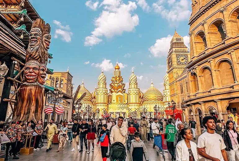 اگر به دنبال ترکیبی از فرهنگ، تفریح و خرید در یک مکان هستید، دهکده جهانی دبی (Global Village) یکی از منحصربهفردترین جاهای دیدنی دبی برای شماست. این مجموعه جذاب، با نمایش فرهنگها و آدابورسوم کشورهای مختلف، تجربهای بینظیر از دبی گردی را فراهم میکند.
