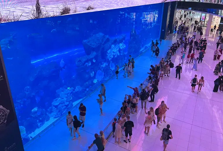 این مجموعه از زمان افتتاحش در سال ۲۰۰۸ به یکی از محبوبترین مقاصد دبی گردی برای خانوادهها، کودکان و گردشگران تبدیل شده است. تونل شیشهای ۴۸ متری این آکواریوم، تجربه قدم زدن در زیر اقیانوس را بهصورت واقعی برای بازدیدکنندگان بازسازی میکند. همچنین امکان غواصی با کوسهها و تغذیه موجودات دریایی، آکواریوم دبی را به یکی از هیجانانگیزترین مکان های دیدنی دبی بدل کرده است.