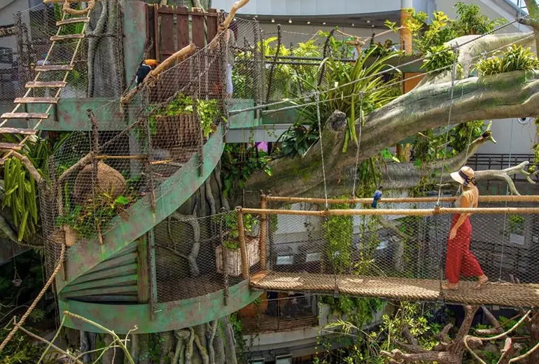 سیاره سبز بهعنوان یک اکوسیستم مصنوعی در قلب شهر، میزبان صدها گونه جانوری و گیاهی از جمله پرندگان رنگارنگ، خزندگان، میمونها و پروانهها است. شاخصترین بخش این مجموعه، درخت غولپیکر ۲۵ متری در مرکز سازه است که چهار طبقه اصلی را به هم متصل میکند. اگر به دنبال تجربهای متفاوت در میان جاهای دیدنی دبی هستید، بازدید از این مجموعه منحصربهفرد را از دست ندهید.