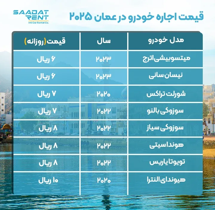 قیمت اجاره خودرو بدون راننده در مسقط چقدر است؟