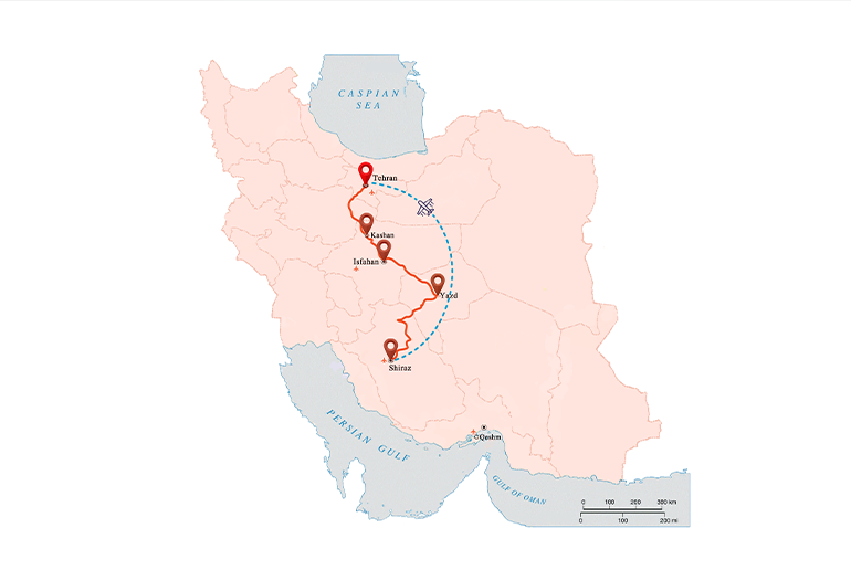 جذابیت ایران را با تور کلاسیک جاده کشف کنید که از تهران شروع شده و در شهر تاریخی شیراز به اوج میرسد. در این سفر با تاریخ و فرهنگ ایران و مناظر شهرهای این کشور آشنار میشوید. همانطور که از تهران، به سمت شیراز سفر میکنید،. بناهای باستانی، کاخهای باشکوه و بازارهای شلوغ را بازدید کرده و در طول مسیر از طعمها و سنتهای محلی لذت ببرید. تور ماهرانه ما تجربهای بینظیر را تضمین میکند و داستانهای ایران را زنده میکند. این سفر جاده ای فقط یک تور نیست، بلکه سفری در زمان است که در شهر شیراز ادامه پیدا میکند.