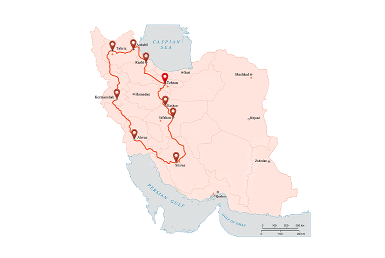 با این سفر که به طور کامل با ماشین انجام میشود سفری فراموش نشدنی را با تور خصوصی فرهنگ، تاریخ و طبیعت ما در ایران آغاز کنید. از شهر شلوغ تهران به سمت کاشان و اصفهان رفته و در در شیراز غرق در زیبایی شوید، در حالی که از اهواز گذر میکنید سفری به کرمانشاه، همدان و تبریز داشته باشید. از زیباییهای آرام اردبیل لذت ببرید و از سرسبزی رشت لذت ببرید. این تور با برنامه ریزی دقیق، آشنایی با فرهنگ، تاریخ و طبیعت چندوجهی ایران را ارائه میدهد و فرصتی بی نظیر برای مشاهده چهرههای متعدد این کشور است. هر مقصد گواهی بر میراث ماندگار ایران بوده و این تور جادهای را به سفری برای کشف و شگفتی تبدیل میکند.