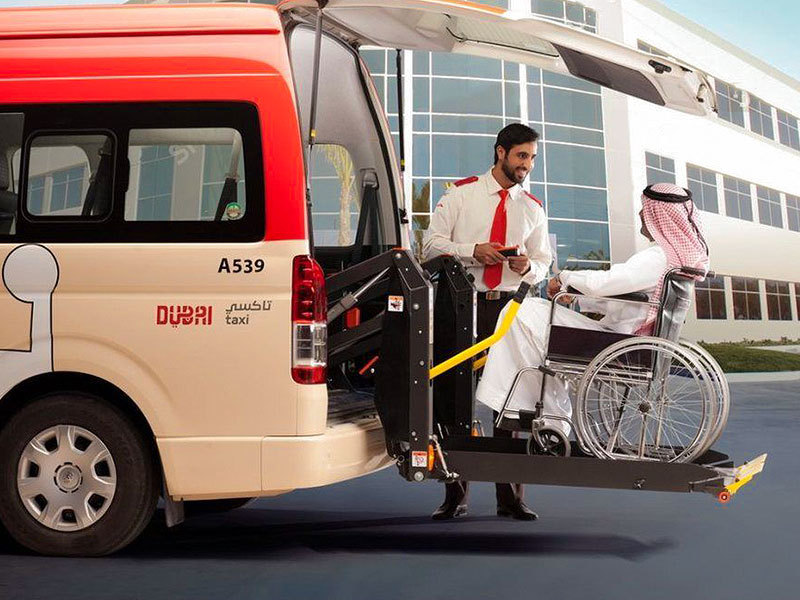 شرکت تاکسیرانی در دبی این امکان را برای مسافران معلول فراهم آورده تا بتوانند به راحتی از خدمات تاکسی دبی بهرهمند شوند، تاکسیهای با سقف قرمز مخصوص این خدمات هستند. جایگاه تاکسی معلولین دبی به صورت منحصر به فردی برای این افراد طراحی شده تا بتوانند به راحتی سوار تاکسی شوند و از آن پیاده شوند.