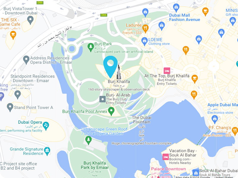 برج خلیفه با ۱۶۳ طبقه، بلندترین سازه در جهان است. این آسمان‌خراش رکوردشکن دارای چندین سکوی دید باز و سالن‌های شیکی است که چشم‌اندازهای زیبایی از امارات و خلیج فارس ارائه می‌دهند. بالاترین سالن در طبقه ۱۵۴ برج خلیفه واقع شده و یک هتل در طبقات ۳۸ و ۳۹ وجود دارد.