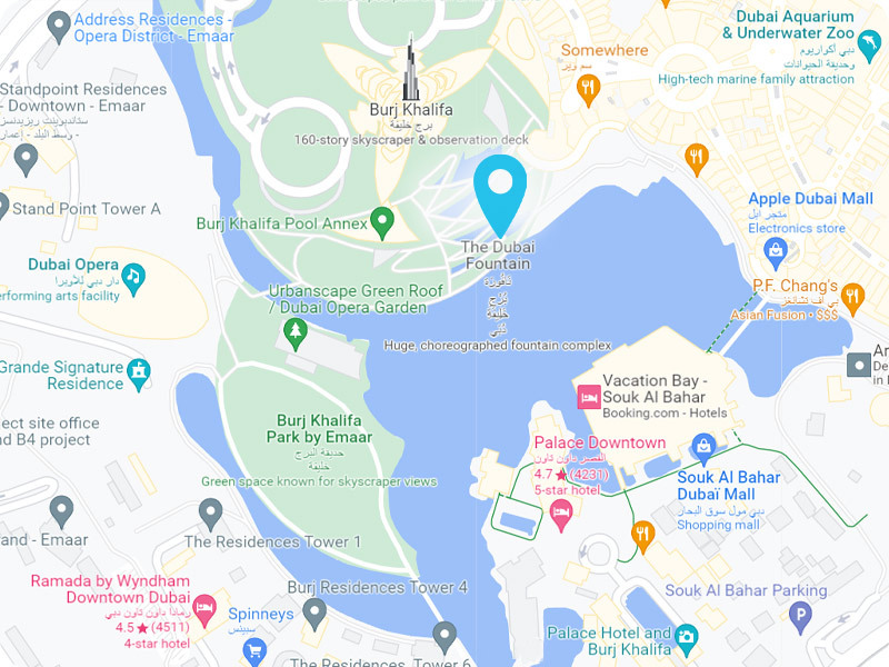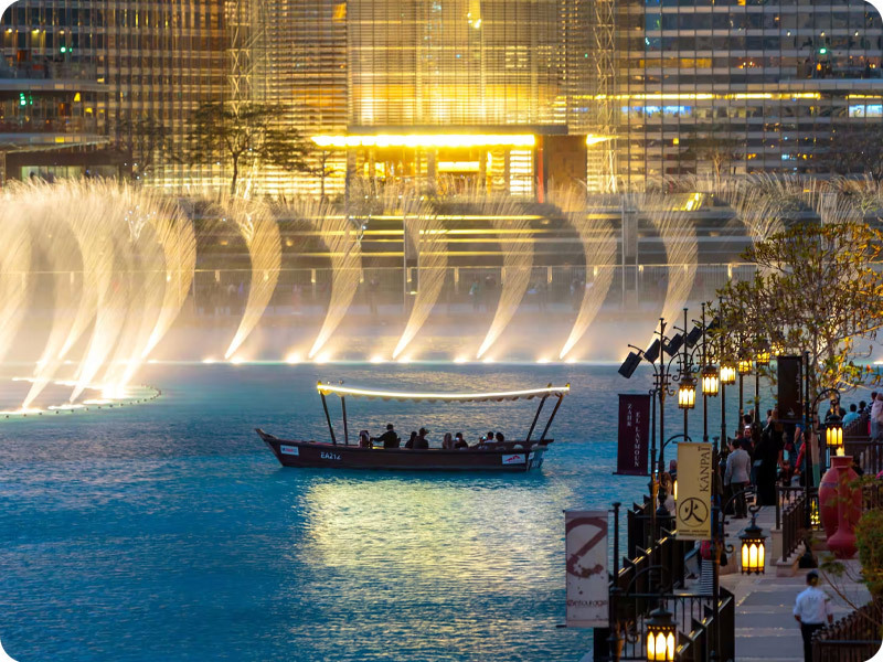 فواره دبی که در دریاچه برج خلیفه در مرکز شهر دبی واقع شده است، یکی از بزرگ‌ترین و دیدنی‌ترین فواره‌های جهان با جذابیت زیاد است. ارتفاع آب این فواره به ۱۵۰ متر هم می‌رسد. فواره یا آبنمای دبی حدودا ۲۷۵ متر طول دارد که تقریباً مساحتی به اندازه دو زمین فوتبال است.